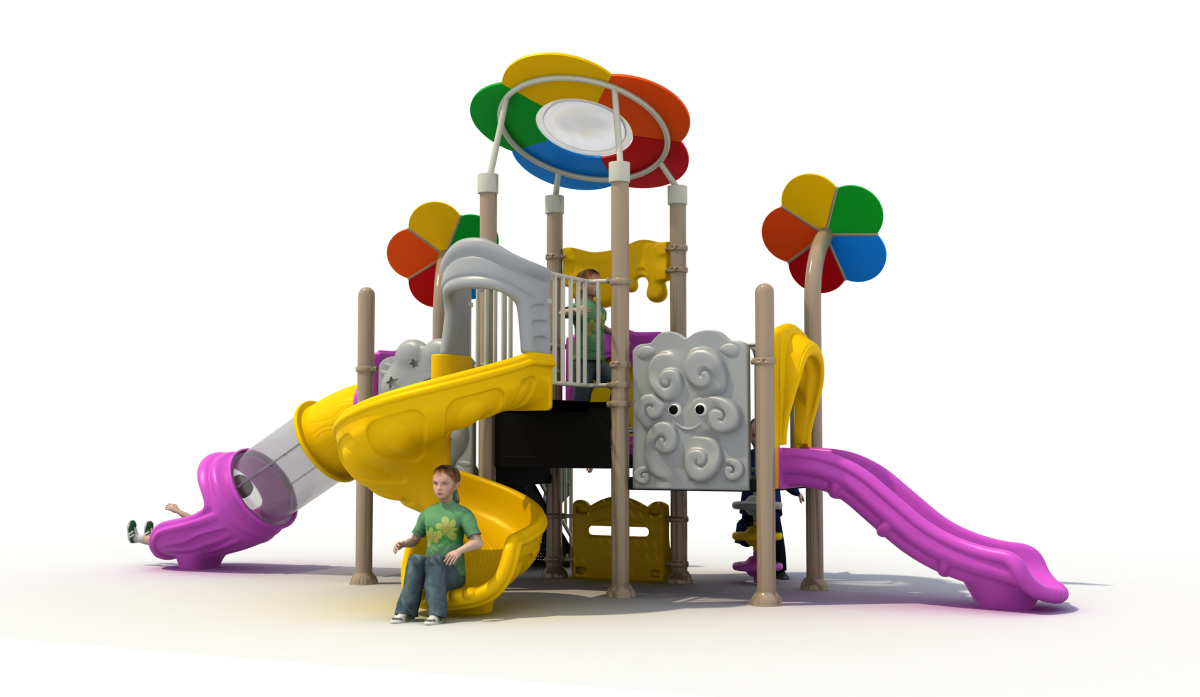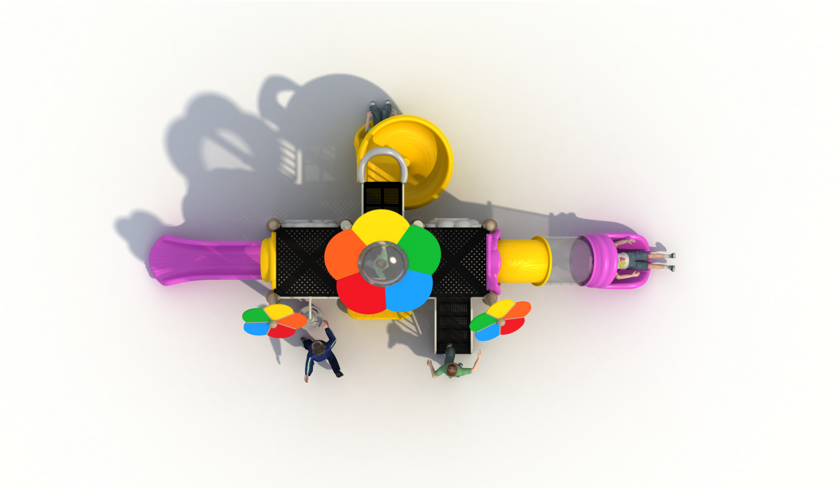 El conjunto Mundo Pétalo destaca por su diseño colorido y temático inspirado en la naturaleza. Combina distintas zonas de juego interconectadas que fomentan la actividad, la imaginación y la socialización.