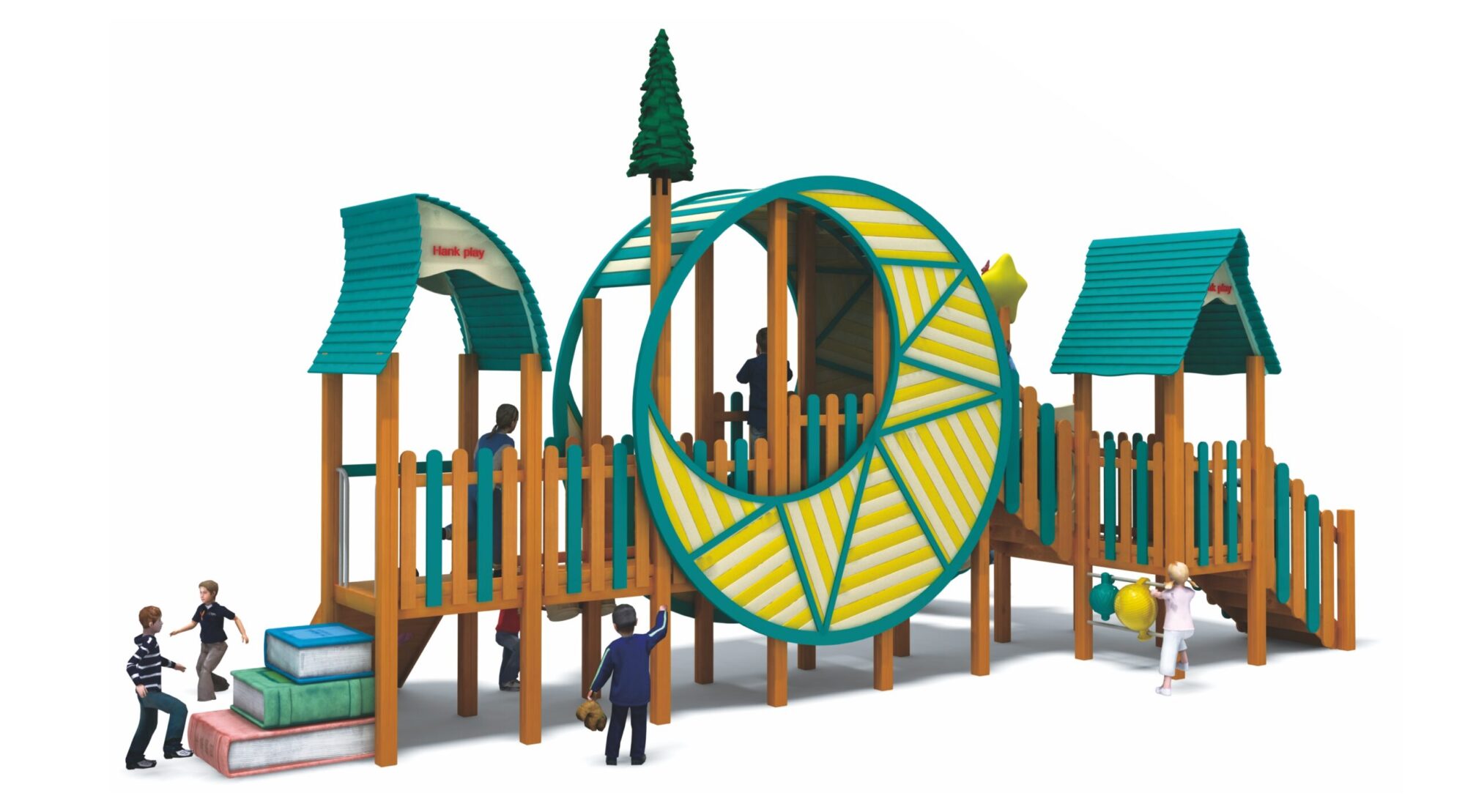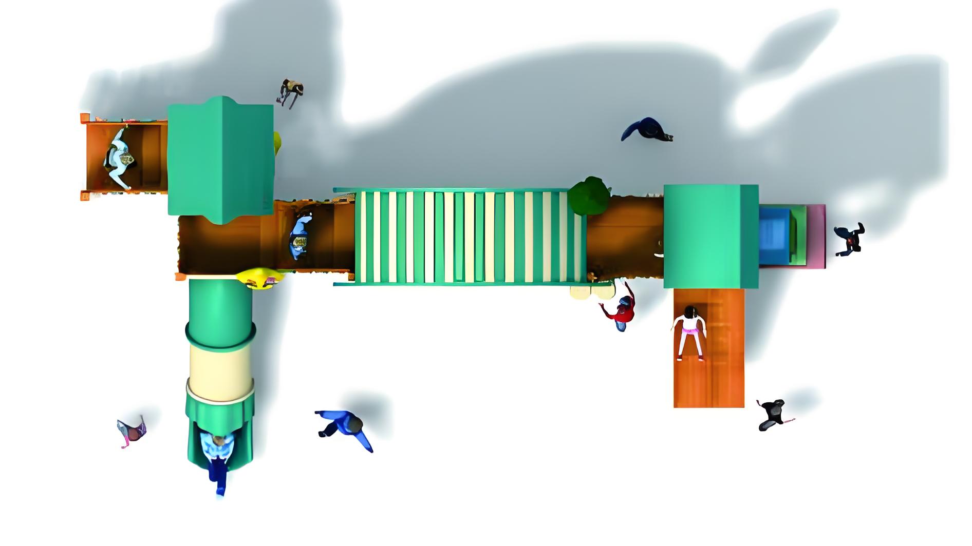 El Parque Viaje Estelar invita a los niños a vivir una experiencia intergaláctica a través de un diseño temático y envolvente. Consta de tres plataformas interconectadas, cada una con su propio tobogán, dos de ellos paralelos y uno cerrado, unidas mediante un puente central coronado por una gran media luna decorativa. Este conjunto combina dinamismo, estética y funcionalidad, fomentando la exploración, la actividad física y la imaginación en un entorno seguro y de alta calidad constructiva.