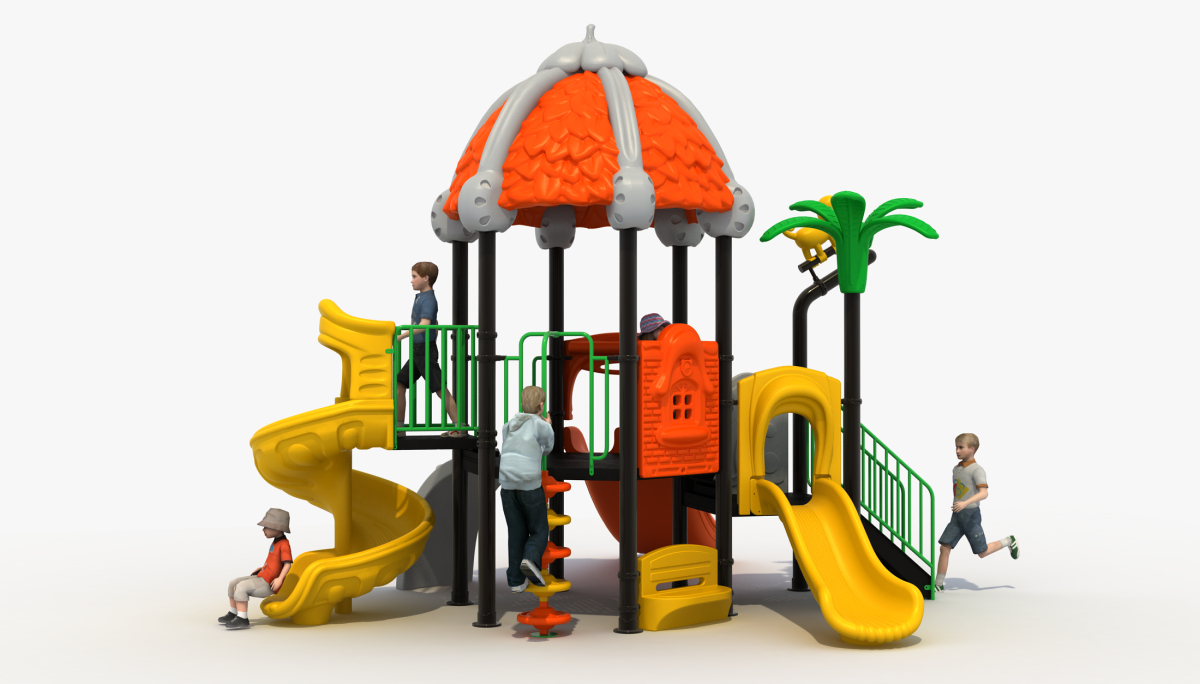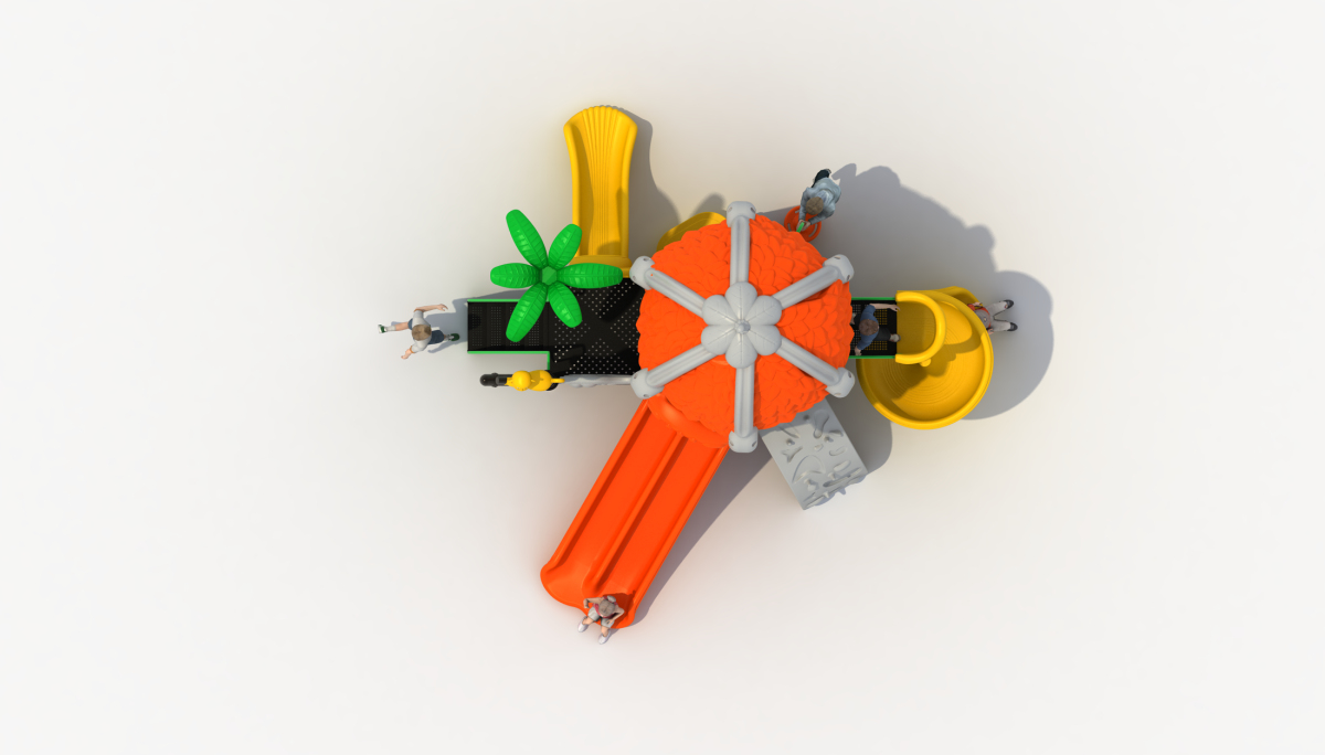 El conjunto Tobogán del Bosque es una estructura multifuncional diseñada para fomentar el juego activo y el desarrollo motriz. Integra cuatro toboganes, uno de ellos en espiral, una zona de escalada y una plataforma cubierta. Fabricado con materiales de alta calidad y gran durabilidad, combina diseño, funcionalidad y seguridad en un entorno lúdico de inspiración natural.